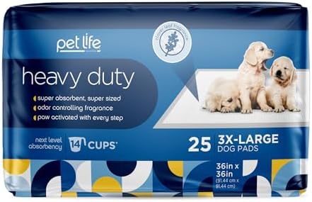 Contains (1) 25ct pack of Pet Life Unlimited, 3XL Heavy Durty Dog Pads with Odor-Controlling Technology