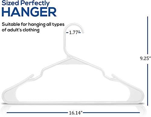 PLASTIC HANGERS PACK – Pack of plastic hangers with each hanger measuring 16.14 x 0.23 x 9.25 inches.